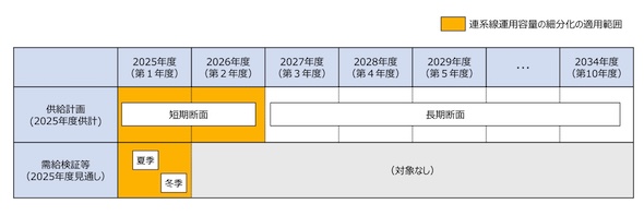 具体的には、供給計画の短期断面(第1年度・第2年度)及び、夏冬の電力需給検証における需給バランス評価(予備率評価)に対して、30分細分化運用容量を適用することとした。
