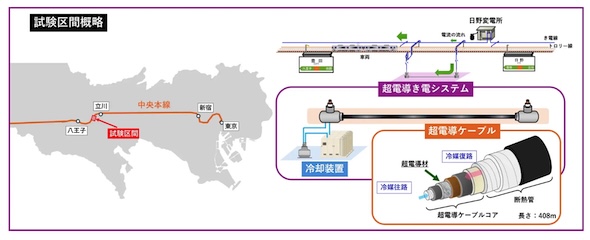 鉄道総合技術研究所とJR東日本は2025年2月25日、中央本線の日野駅-豊田駅間において「超電導き電システム」の実証実験を開始すると発表した。