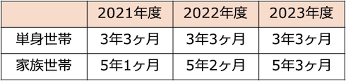 このうち「3.毎月の検針」は、オプトアウト中は毎月発生するコストであり、どの程度の期間分の費用を「最低限のコスト」として織り込むことが妥当であるかが論点となる。日本賃貸住宅管理協会の調査によれば、賃貸住宅における平均入居期間は、家族世帯と比較して短期間の使用となる単身世帯では3年程度であることが分かっている。