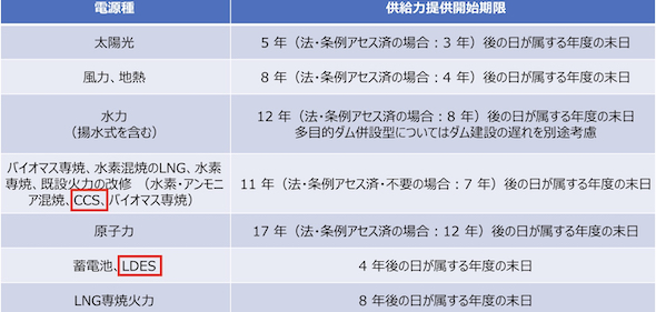 以上より、長期脱炭素電源オークションの第3回入札対象となる電源の供給力提供開始期限は表3の通りとなる。