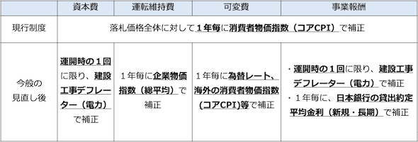 ただし、メーカーとの間で建設費が固定額になっているケースや、プロジェクトファイナンスによって金利が固定化されているケース等、補正の必要性がなく、補正することが逆にリスクとなる場合も考えられる。よって、事業者は自動補正を行う費用項目を選択できることとする。
