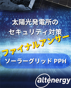 こうした状況にあって、太陽光発電関連事業を展開するオルテナジー(東京都立川市)の2つのソリューションが注目を集めている。サイバー攻撃から発電所を守る次世代遠隔監視システム「ソーラーグリッドPPH(Public Power Hub)」と、初期費用ゼロ円で最新パワコンに交換できる「パワコンまるごとサービス(通称:パワまる)」だ。