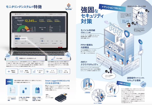 ソーラーグリッドPPH(Public Power Hub)は、そうした社会課題を見越して開発されたセキュリティ特化型のモニタリングシステムであり、これを導入することで、外部からの侵入が実質的に不可能になるという。モバイル通信による閉域網の活用で強固なセキュリティ環境を構築するのが大きな特徴で、ハッキングや情報漏洩(ろうえい)などのリスクから発電所を守りつつ、遠隔監視によるさまざまなデータ分析も実現できるのだ。