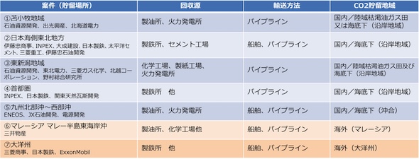 また、エネルギー・金属鉱物資源機構(JOGMEC)は、2030年までに合計で年間600万〜1,200万tのCO2を貯留することを目標とした7つの「先進的CCS事業」を選定し、CO2の分離・回収から輸送、貯留までのバリューチェーン全体を一体的に支援している。