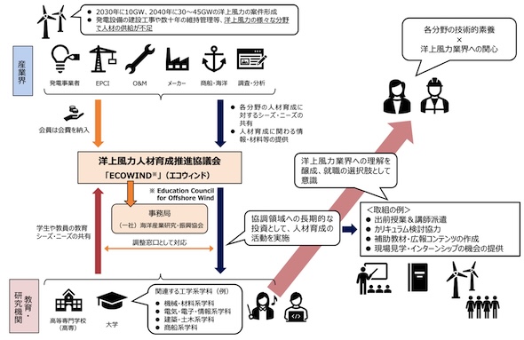 また、洋上風力発電事業を支える人材確保・育成のため、産業界と教育・研究機関が連携して「洋上風力人材育成推進協議会(略称:ECOWIND)」を設立し、洋上風力に関する幅広い教育と理解醸成を進めていくこととした。
