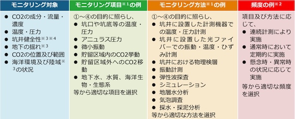 CCS事業法では、貯留事業者に対して、貯留層の温度・圧力等のモニタリング義務を課した上で、貯留事業実施計画において「モニタリング計画」の作成を求めている。
