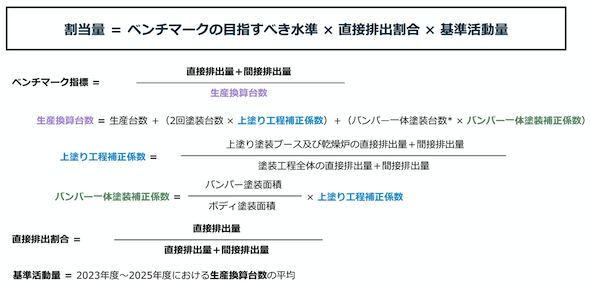 以上より、自動車製造業のベンチマーク指標及び排出枠割当量の算定式は以下の通りとする。