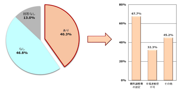また小売事業者に対するアンケート調査によれば、これまで国等の契約において、市場連動が許容されない等の料金体系の不一致や入札時の価格設定を要因として、入札を見送った事例が多いことが確認された。