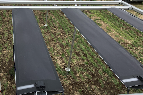 これは積水ソーラーフィルムの親会社である積水化学工業とTERRAが、2024年8月から千葉県匝瑳市で実地検証を進めてきたもの。今回の実証を通じて、発電性能や農作物である稲の成長環境への影響、フィルム型ペロブスカイト太陽電池ならではの有用なデータの取得などを検証する。