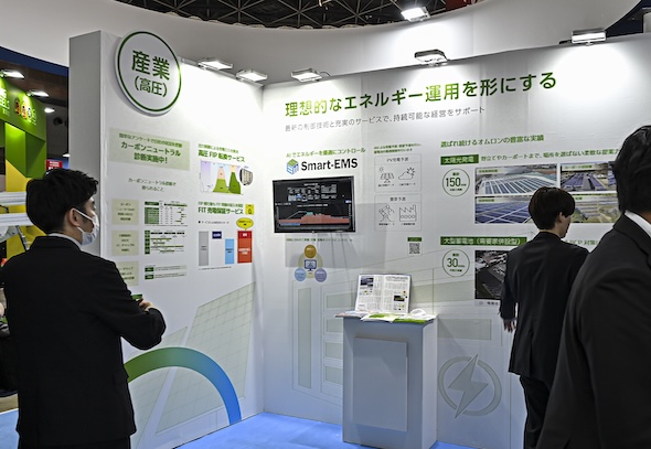 今回の展示会のブースで打ち出したのは、FIP転換済み太陽光発電所への蓄電池後付けによる収益最大化ソリューションと、産業用蓄電池を活用した市場連動型の電気代削減プランだ。補助金申請から設備導入・運用まで一気通貫でサポートする。