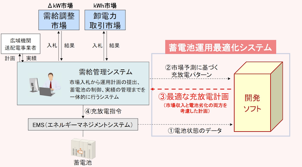 今回、こうした両社の技術や知見を活用し、旭化成の蓄電池劣化診断ソフトウェアをベースに、蓄電池の充放電計画を立案するソフトウェアを新たに共同開発する。また、下松蓄電所などで実証試験を行うことで、システムの商用化を目指す方針だ。
