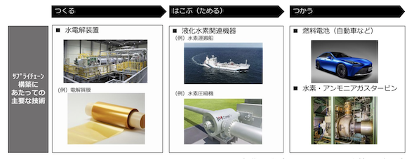 水素やアンモニアは、鉄鋼、化学、モビリティ、発電といった幅広い分野での脱炭素化に不可欠であるほか、エネルギー安全保障の観点からも重要なエネルギーとされている。