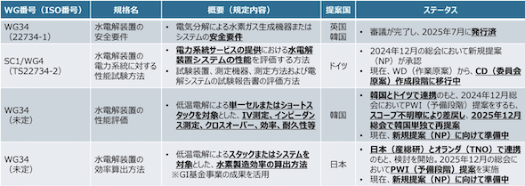 日本も本年4月に「分野別標準戦略(水素・アンモニア)」を策定し、日本において対応を進めるべきと考えられる標準化項目(重点領域)を特定するとともに、標準化を推進する体制等を整理した。一例として、水電解装置の性能評価や効率算出方法、安全要件を規定する国際規格の提案など、日本の技術優位性が確保できる取り組みを進めている。