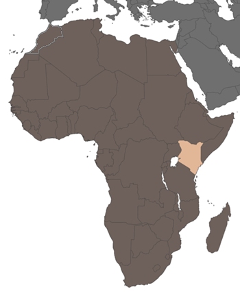 図3 ケニアの位置 ケニアはアフリカ東海岸に位置し、赤道直下にある高原の国だ。面積は日本の約1.5倍。化石燃料の産出はない。火山国であるため、地熱発電の比率が14.6%(2007年時点)と高い。著名な火山は、同国中央にそびえる最高峰のケニア山(5199m)。