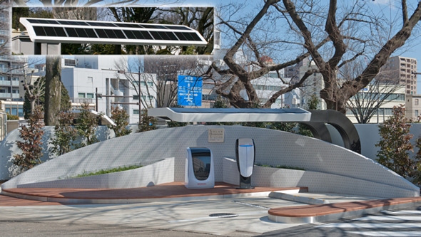 2012年3月27日には、埼玉県庁*1)にガソリンスタンドに相当する「ソーラー水素ステーション」を設置、燃料電池車「FCXクラリティ」と組み合わせた2年間の実証実験を開始した(図1)。