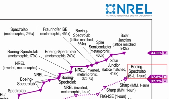 太陽電池の効率競争に新たな1歩、ボーイング子会社が37.8%を達成:自然エネルギー