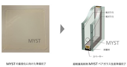 実用化開発フェーズとしては5件が採択された。1つがティエムファクトリが京都大学、YKK APと共同で実施するこれまで断熱材が適用できなかった窓に実装できるペアガラスの開発だ。既に超軽量かつ透明な断熱材エアロゲルの低コスト化に成功しており、今回は実用化に向け残る技術課題の解決を目的とした研究開発を進める計画だ。この新しいペアガラスを実用化でき、市場に流通している断熱窓および非断熱窓と置き換えれば、それぞれ43%、75%の空調消費エネルギーを削減できる見込みとしている(図2)。