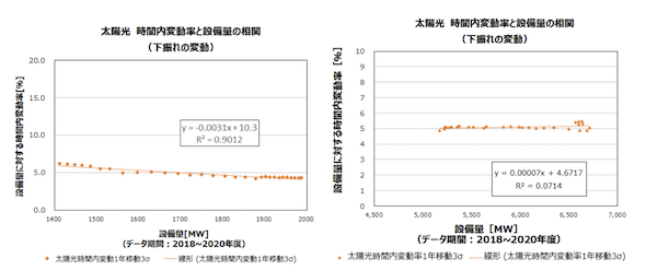 VRE導入量と時間内変動の相関