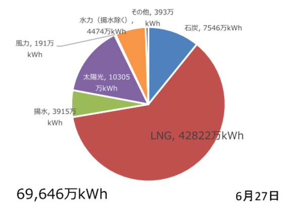 また電力広域的運営推進機関(広域機関)は、複数の一般送配電事業者に対して、東電PGに向けた電力融通指示を発出した。この融通指示(最大で135万kW)は6月27日から7月1日の間で20回に上る。