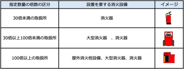 なお、危険物の「取扱所」では、指定数量の倍数が大きくなるほど事故率が高くなる傾向にあることから、消火困難性に応じた消火設備の設置を求めることとする。