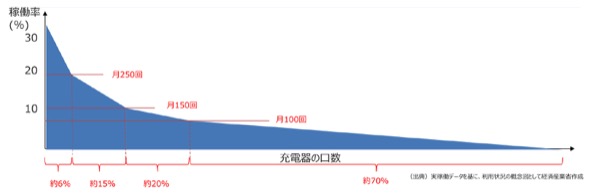高出力な急速充電器は、充電時間は短いものの、電気料金の基本料金分などの維持費用が掛かるため、稼働率の確保が必要とされるが、高速道路では稼働率が10%未満の充電器が大半を占めている。