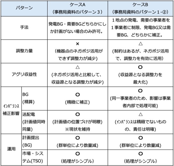 ケースBは、インバランス責任は明確である一方、インバランス量は精緻ではないという短所があるものの、調整力供出量の増加を期待して、このケースの参加を認める案としている。