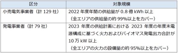 また供給力に関しては、供給計画のデータ、及び以下の対象となる事業者に対して追加的な報告を求め、得られたデータを基礎として分析を行った。