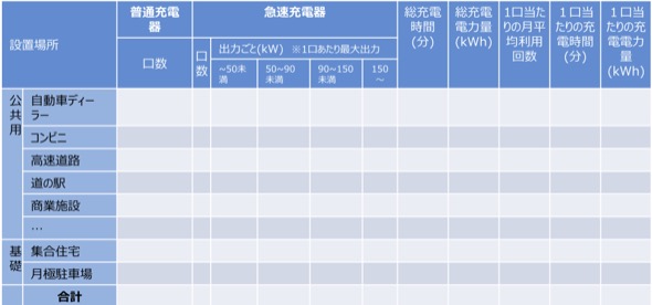 また、利便性が高く持続可能な充電インフラ社会の構築を目指す上では、充電器の設置場所に関する状況や稼働率などの情報を公表することが望ましい。このため、補助金を活用して設置する充電器については、各事業者の場所ごとの設置数や稼働率について、定期的に各社のHP等で公表するなどの措置について、検討を行う予定としている。
