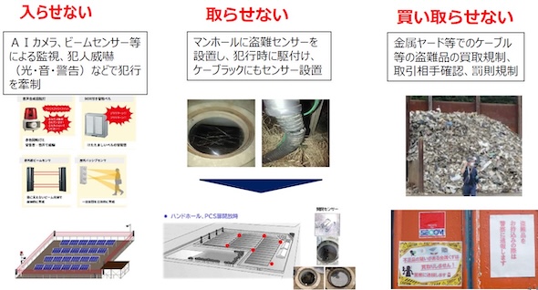 もはや銅線ケーブル盗難は、太陽光発電業界だけの課題ではない。社会の電源インフラを脅かす問題として、警察庁も動き出した。国や業界団体の取り組みや、対策ソリューションの動向を紹介する。