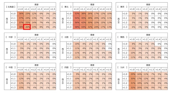 なお先述の表3は、図3の「再エネ1.3倍&需要1.1倍」のケース(例:北海道の赤枠部分)を表したものである。