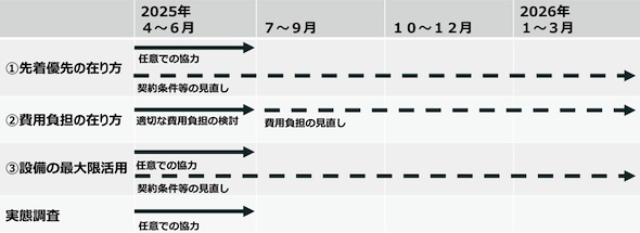 これらの実態調査を踏まえ、需要家に任意での協力を求めながら、必要に応じて契約条件等の見直しを行う予定としている。