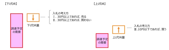 「下げDR」とは、元々調達予定であった需要の一部を減らす行為であり、入札の考え方として、以下の2つが考えられる。