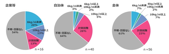 耐荷重に関するアンケート結果は図5のとおりであり、設置予定場所の耐荷重が「計算困難」や「不明・回答なし」との回答が8割を超えており、耐荷重要件により補助事業に応募できないことが課題とされている。