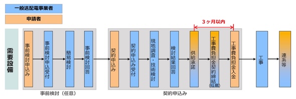 なお、発電等設備(FIT電源)の期限は「2カ月以内」であるが、需要家は契約者(小売電気事業者等)を介して一般送配電事業者に入金すること等を踏まえ、供給承諾から「3カ月以内」とする。