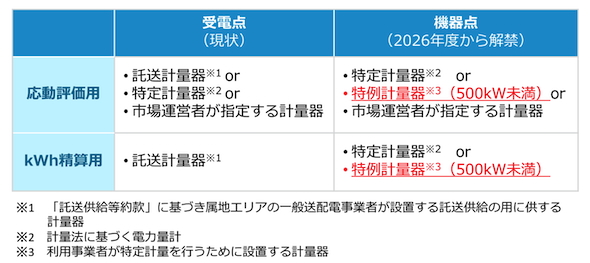 需給調整市場への参入に際しては、「アセスメントII(ΔkWの応動評価)」と「調整力kWh精算」を行うための計量器の設置が必要となる。従来、電気の計量は、計量法に基づき、検定等に合格した計量器(特定計量器)を用いる必要があったが、機器点ごとに当該計量器を設置することは費用面で負担が大きく、実質的な参入障壁となっていた。