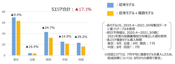 初期に複数モデルを導入した5エリア(東京・北陸・関西・中国・四国)合計では、三次②の必要量が17%程度低減可能と試算されている。