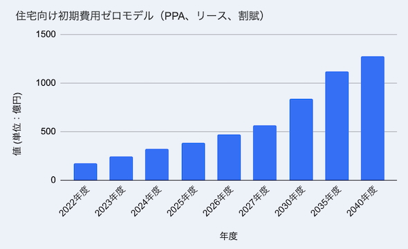 住宅用太陽光の初期費用ゼロモデル市場 2040年度に1278億円に:太陽光(1/2 ページ)