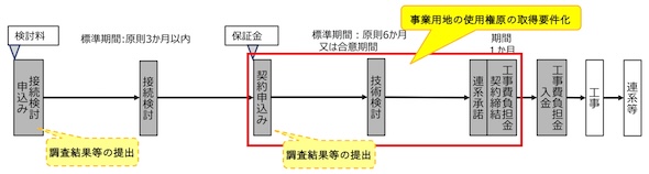 現行の接続契約申し込みプロセスでは、申込者は系統接続を行う予定の土地の取得は必須ではなく、事業用地における使用権原の確認は行われていない。これが、系統接続の権利(契約)だけを確保する「空押さえ」増加の一因となっている。