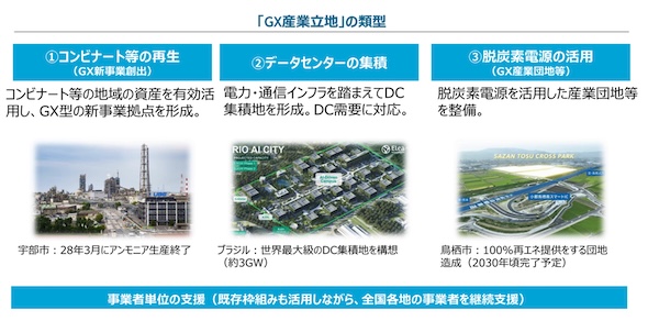 また国のGX実行会議では、規制・制度改革と支援策を一体で措置する「GX戦略地域」制度の創設が示され、その一類型として、GW(100万kW)級のDC集積地の形成が示された。